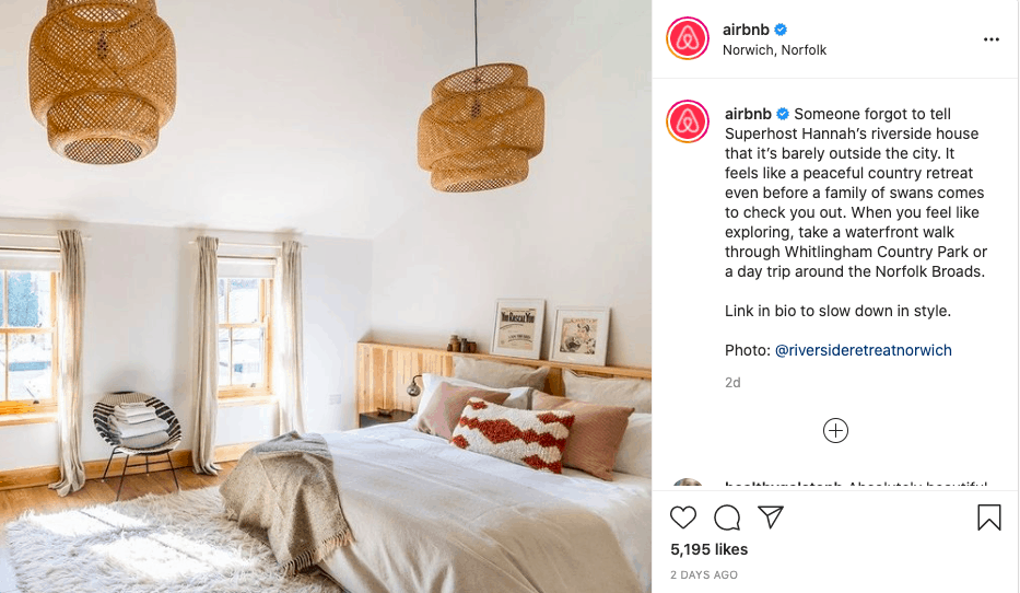 Not only does showing off their customers help to encourage other customers to keep using the Airbnb, but it also creates that sense of “home away from home” that lies at the heart of the brand – inspiring previous Airbnb users to take their next adventure.