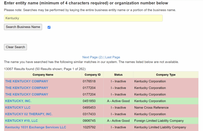 Doing a business entity search means looking for information about a business that’s registered in your particular state as a legal entity. There are several reasons you might want to search for a business and see if it’s legally registered. One of those reasons is if you’re planning to form an LLC in Kentucky and want to see if the name you’re considering is available in Kentucky.