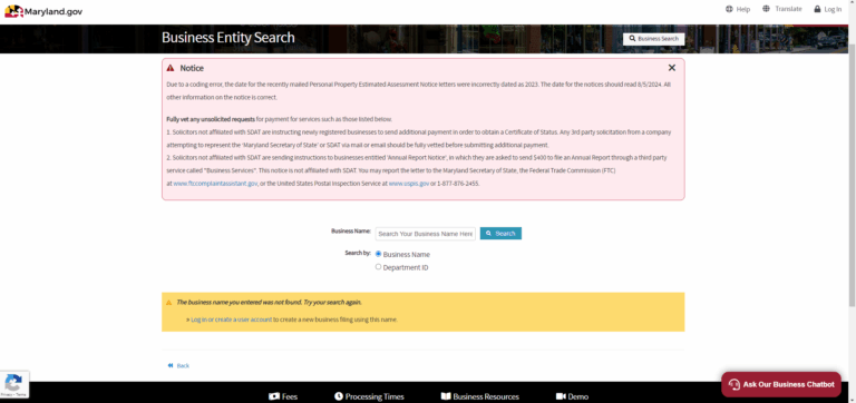 If your name doesn’t appear at all in the Maryland business entity search results, congratulations – it’s very likely available! But for total certainty, consider using the official name availability verification process. This involves submitting your name for confirmation directly through the state. There is a small fee, but it provides official documentation proving your name is free to register.