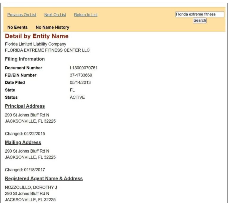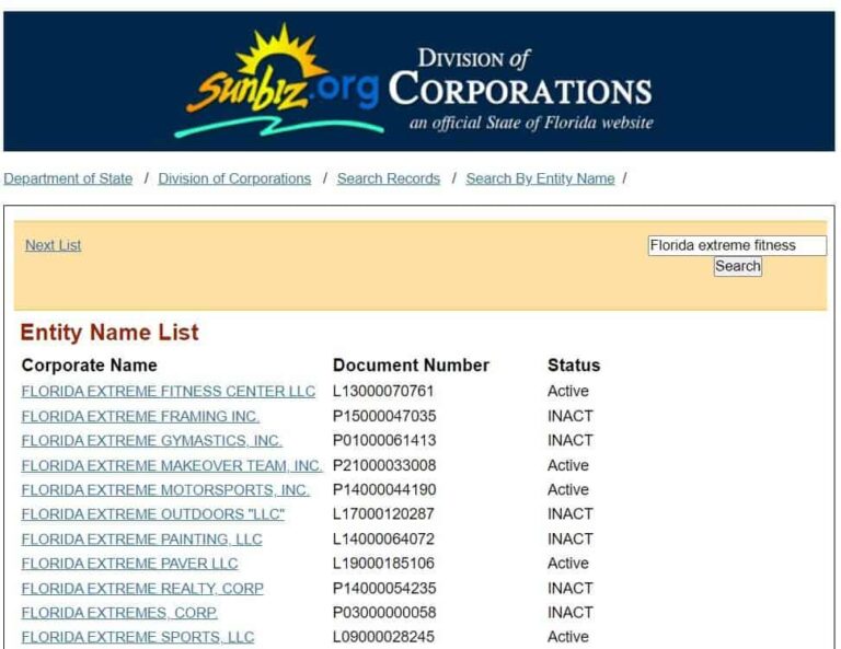 For instance, if you want to use Florida Extreme Fitness LLC, begin with “Florida Fitness,” which broadens the search and shows similar names.