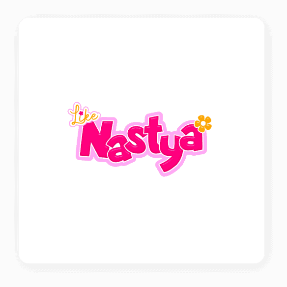 Like Nastya is another kid-oriented YouTube channel that uses many of the same design themes as Cocolmelon, such as friendly-looking fonts and lots of bright, primary colors.