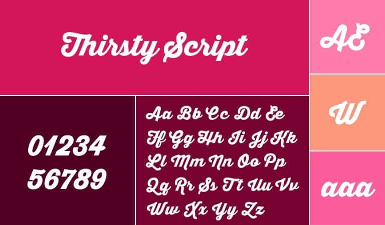 The font comes in an array of styles and weights, including a range of glyphs and alternating characters that make Thirsty a versatile and multi-purposeful choice.