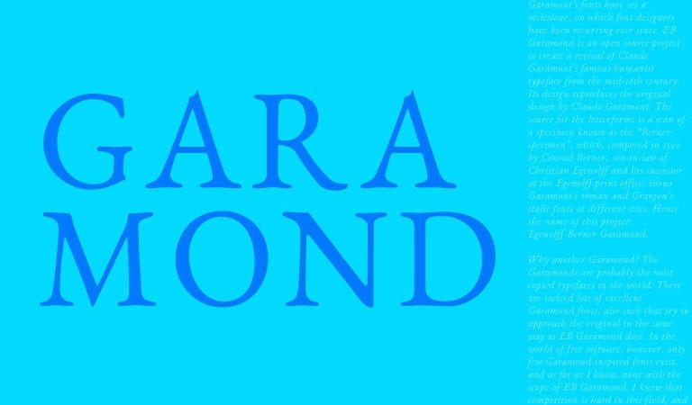 Garamond is another standard in the corporate world created by the familial pair. Its slightly heavier lines and spacing make it easy to read. As a result, it’s also used in presentations, publications, and other longer texts.