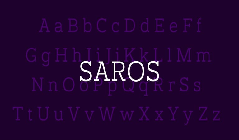 Another slab serif that can stand up to tiny print, Saros is used all across the branding board. Its flexibility stems from its dimensional construction, and it gives off a reliable, personable feel.