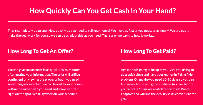 This is what Mrs. Property Solutions does with its How Our Home Buying Process Works page, which covers everything homeowners need to know about selling their property.