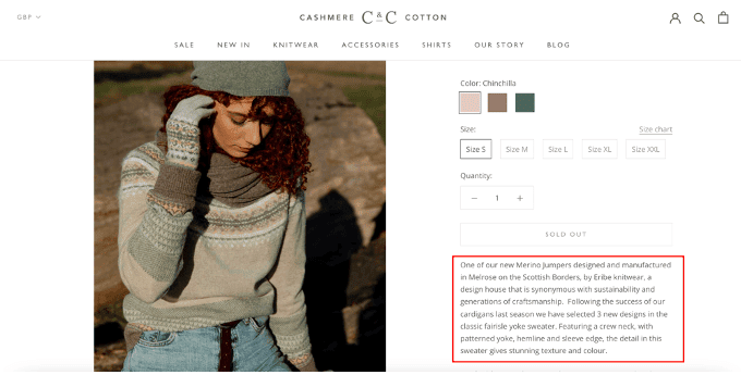 Or, if you’re an ecommerce business, you could even take things a step further. You can provide in-depth info about where you source your materials, like Cashmere Cotton does.