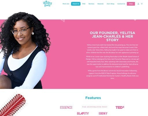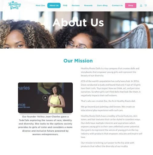 Healthy Roots Dolls is a toy company that creates diverse dolls and storybooks for young girls, creating characters that come in all colors with various interests and aspirations. Through their dolls and storybooks, they aim to inspire self-love and empower the women of tomorrow.