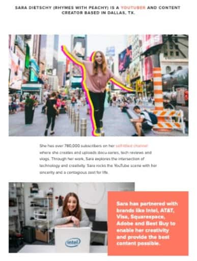 If you’re creating original content, then you are the product. Content creator Sara Dietschy has over 835,000 subscribers on YouTube, where she uploads tech reviews, docu-series, and vlogs. She’s partnered with big names like Samsun, Logitech, and AT&T. As you can see, she’s focusing solely on her niche and creating engaging and informative tech content.