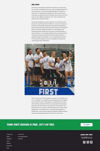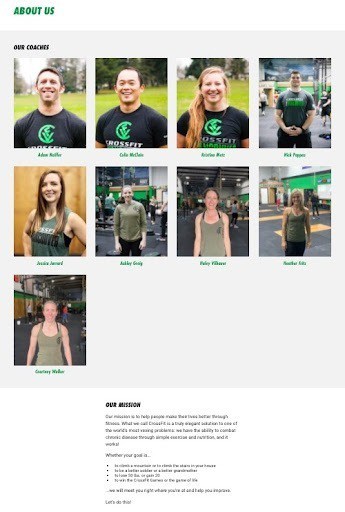 Their page isn’t “fancy,” but it’s a great example that you don’t need to be a web designer to nail this page. They included all the essential information but switched the layout around. They placed their staff photos in the beginning, followed by their mission, business story, achievements, and ended with a call to action in bright green.
