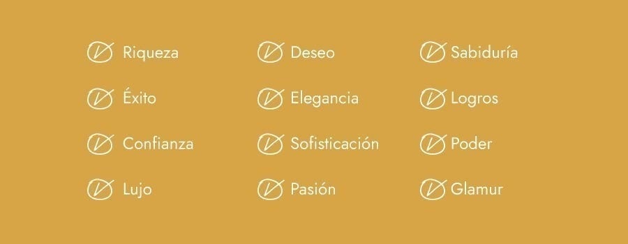 Como mencionamos anteriormente, el dorado representa atributos como la riqueza, el éxito, la confianza, el lujo, la pasión, los logros y el poder. Dicho esto, existen determinadas formas que combinan bien con el dorado.