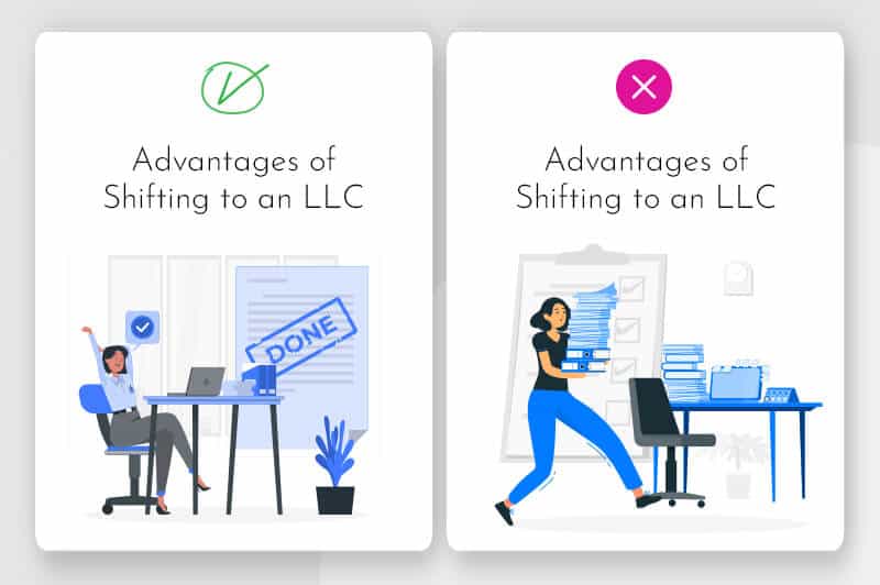 Most people change to an LLC when their business outgrows the basic structure of a sole proprietorship. And the advantage of registering an LLC outweighs the cost and ongoing legal requirements.