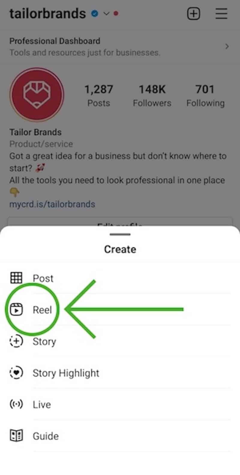 Step 2: Select “Reel.”