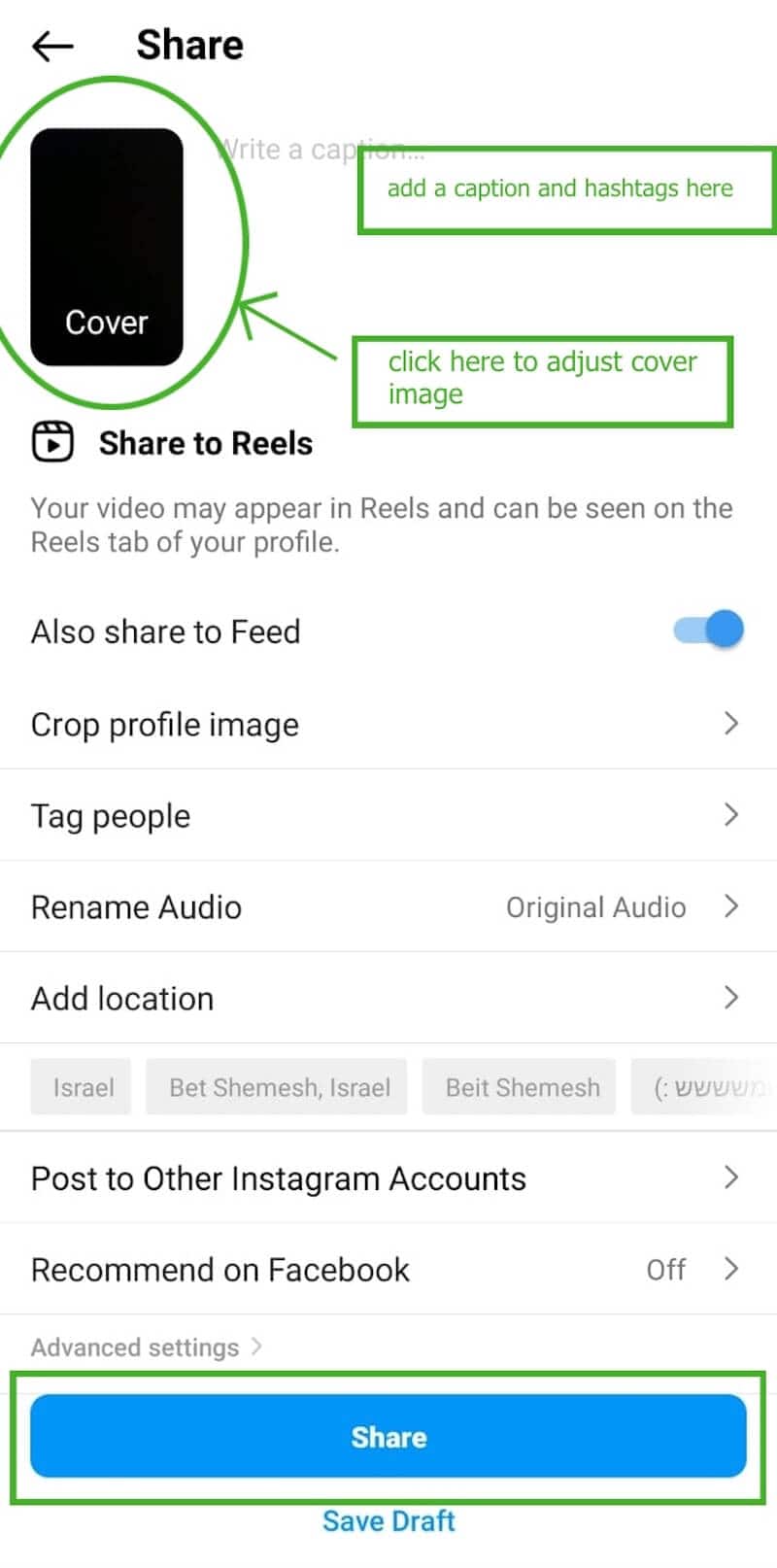 Step 7: On the Share page, you can adjust your cover photo, add a caption before publishing the clip.