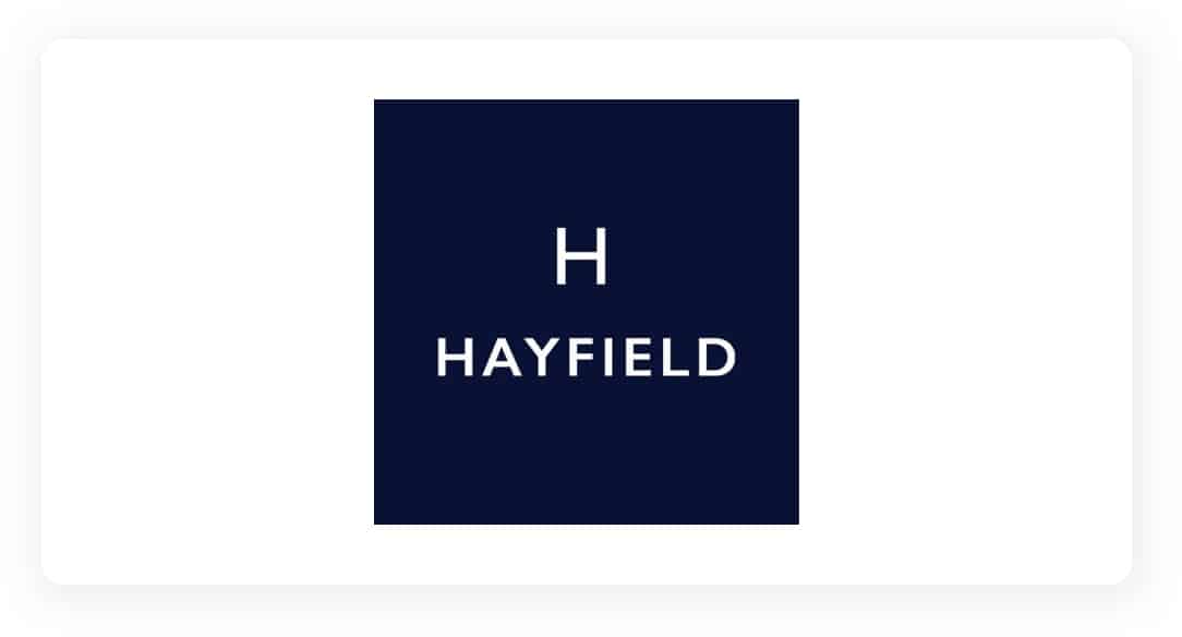 Their emphasis on luxury and impeccable design is clear from their wordmark logo, which features a clean, all-caps, sans-serif typeface in trustworthy navy. Notice how their logo is simple; they don’t even use an icon, which likely helps their audience envision their own home design dreams and see Hayfield’s as the way to bring them to life, rather than being “boxed in” to Hayfield’s vision.