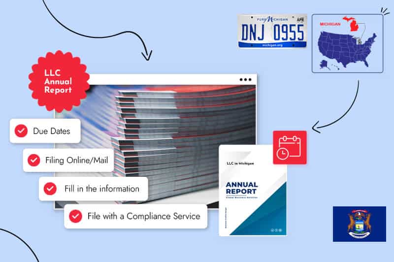 If you have a registered agent, they may handle the annual compliance filing on your behalf. A registered agent service can confirm what reports are due in the State of Michigan and file them promptly to ensure you do not incur late fees, potential fines, or other penalties, including dissolution. We offer full compliance services so our LLC clients never have to worry about late filings or missed filings.