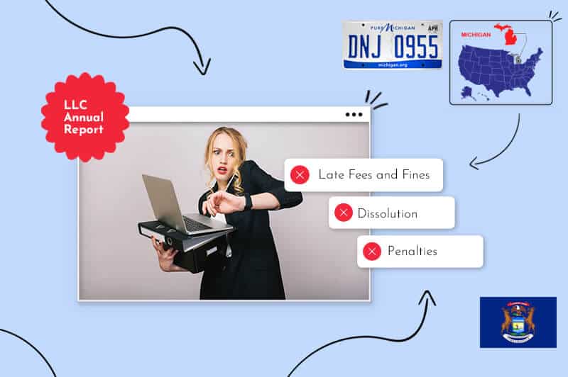 In Michigan, if you fail to file your annual report, your company will no longer be considered in good standing. In addition, if you fail to file for two years, your company name will be at risk of being used by others.