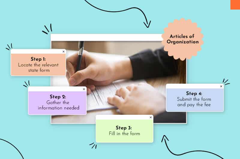 To file articles of organization, you must get the correct form, collect the right information, fill it in, submit it, and pay the fee. Let’s look at how you do all of those next: