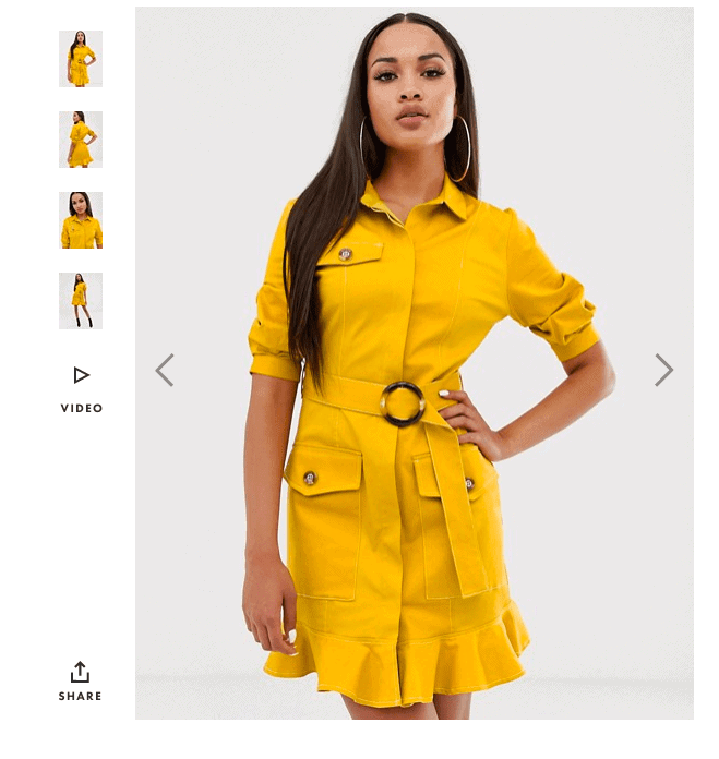 The easiest way to define brand voice is to look at how well-known brands use it. Let’s take the product details of this belted shirt dress from online fashion retailer ASOS as an example: