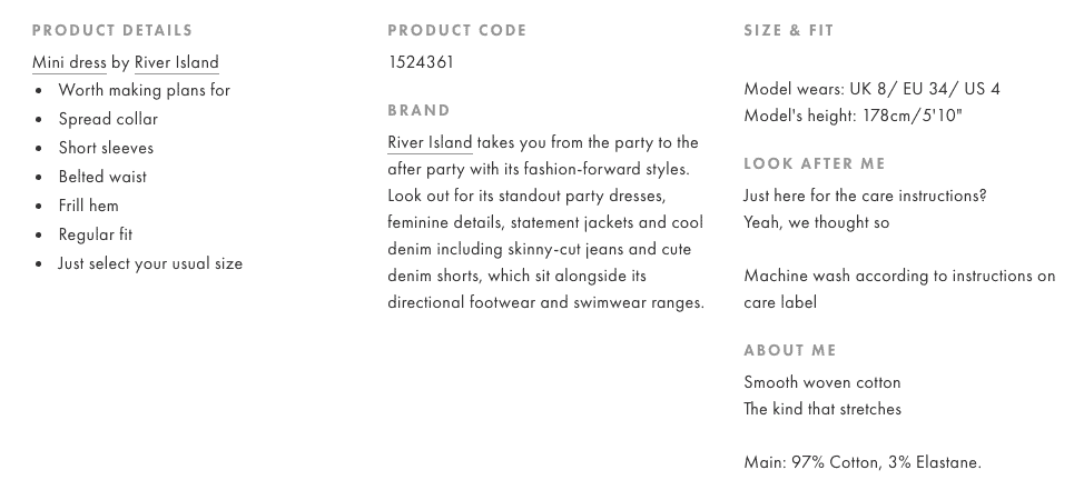 This is an easy way to show how a brand can take the most ordinary (and, let’s face it, boring) content and use their brand voice – in the case of ASOS, a voice that’s clever, catchy, and exciting – to appeal to their audience.