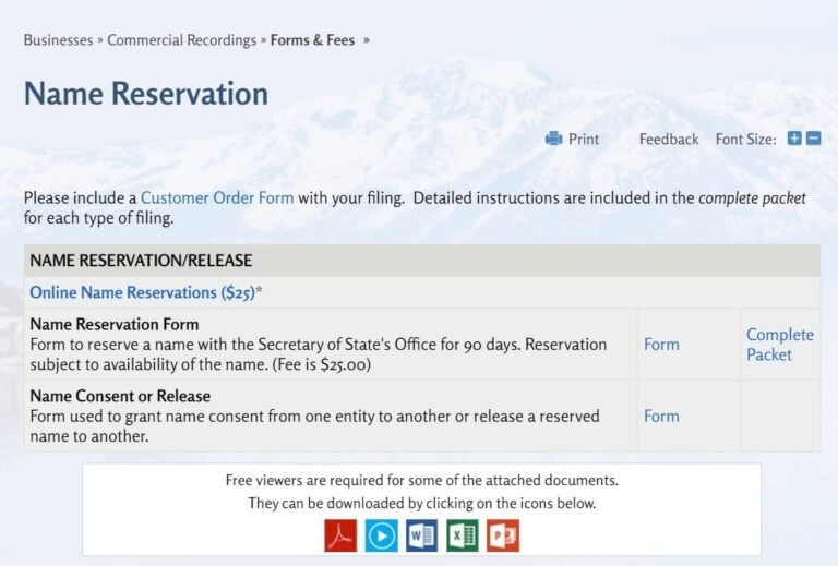 The name reservation form is available for download on the Secretary of State’s website. It includes detailed instructions on how to complete it.