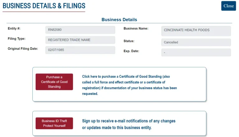 Visit the Ohio Secretary of State’s Business Search page, which maintains a public record of all registered businesses.