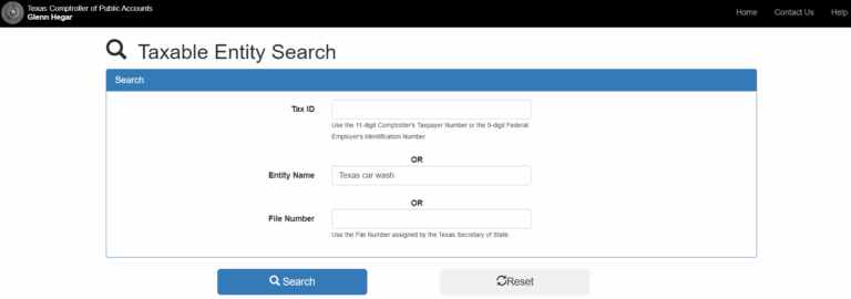 Texas Comptroller’s taxable entity search tool website
