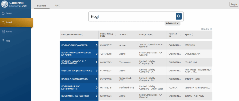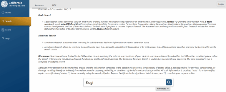 Fortunately, California’s business entity search website is easy to use.