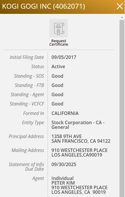 I will use my favorite food truck, Kogi, as an example: