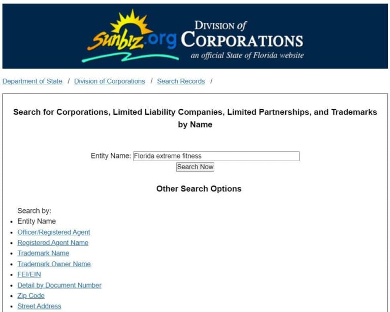 For instance, if you want to use Florida Extreme Fitness LLC, begin with “Florida Fitness,” which broadens the search and shows similar names.