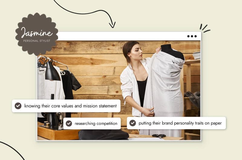 Write a few sentences about your brand personality as if it was a person. Describe what they like, dislike, and even how they look. Here’s an example of this: