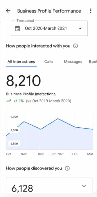 You get information on how customers find your business profile on Google, where they found you on Google Maps/Search, how your photos perform and how customers react to your profile.