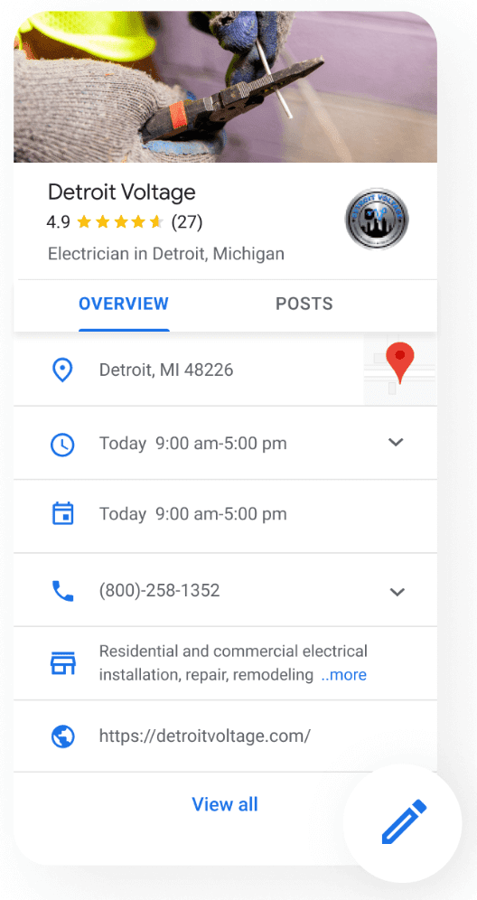 For example, the image above shows the business profile of Detroit Voltage. In their description, they use the following keywords: “residential and commercial electrical,” “installation,” “repair,” and “remodeling.” All these keywords help connect their business profile to users searching for these or related keywords.