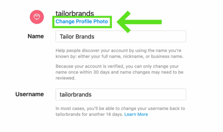 If you have a wordmark logo, a logo that’s your business name, you can change your logo to a lettermark logo, a logo that’s the business’s initials. Sometimes a business name can be wordy, so it’ll need to be modified for your IG logo.