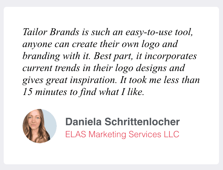 So, for example, if you’re new to Tailor Brands, these testimonials will tell you that our logo maker is easy to use and creates the perfect logo for an affordable price. It gives you the social proof you need to make a purchasing decision.