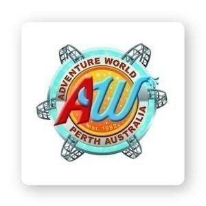 Adventure World’s logo has a distinct early 2000s vibe going on. The most noticeable design element is the roller coaster tracks running along the circular frame. The initials “AW” appear to be hugging; the tip of ‘W’ ends in water droplets, which gives the assumption that it’s also a water park.