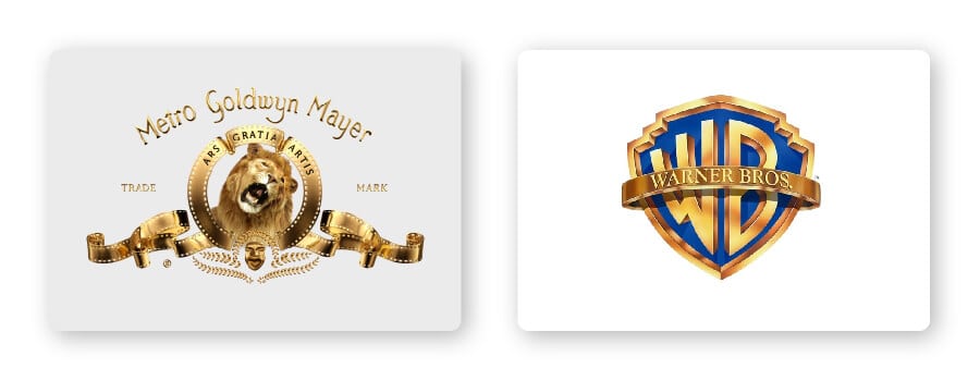 Las empresas de entretenimiento como Metro-Goldwyn-Mayer (MGM) y Warner Bros. Entertainment utilizan un logo dorado para transmitir cualidades como la excelencia, el éxito y el glamur de Hollywood.