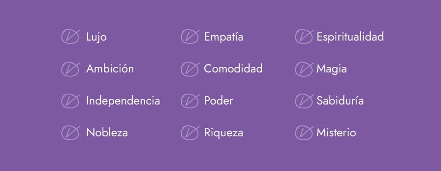 Si lo que necesitas es crear una marca personal, necesitarás un color que transmita inmediatamente a tu público quién eres y a qué especialidad te dedicas. Muestra tus aptitudes mediante el color morado para expresar empatía, ambición, poder y sabiduría.