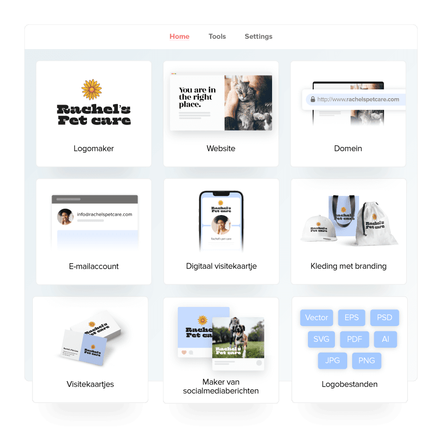 Eén plek voor alle tools die je nodig hebt om je bedrijf te starten en een professionele uitstraling te geven