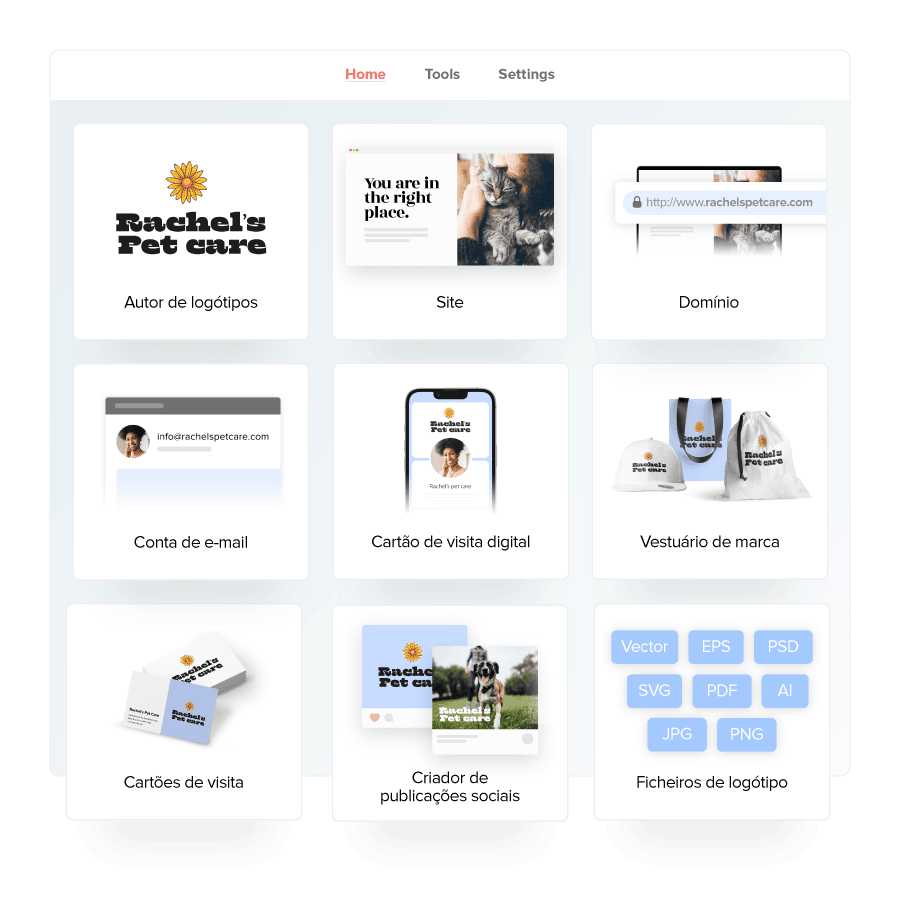 Usa a nossa ferramenta de inteligência artificial para criar um logótipo e um guia de estilo. Terás também designs ilimitados para as redes sociais marcados com o teu logótipo e tema.