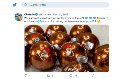 Humor is also helpful if you have a brand or product that others might mock, like the toilet paper company Charmin. Rather than let others laugh at it, Charmin uses its Twitter account to show the world that it doesn’t take itself too seriously. In doing so, it earns the respect and admiration of its audience and forms a bond with them as a result.