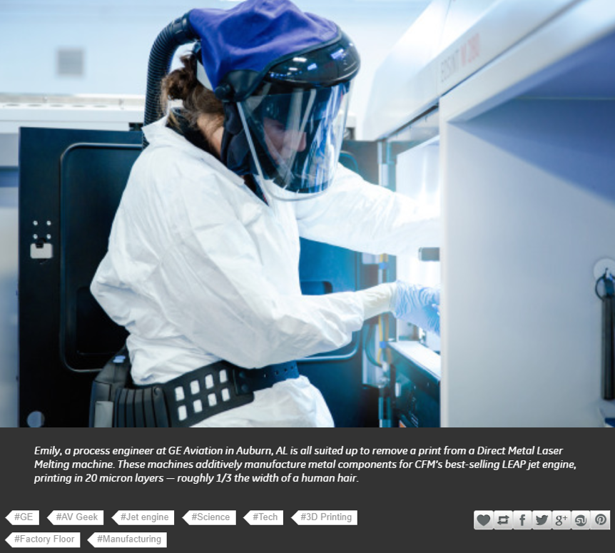 In the photo above, GE gives us the employee’s name—Emily. Emily is a process engineer in Alabama, and she’s super talented at building complex components.
