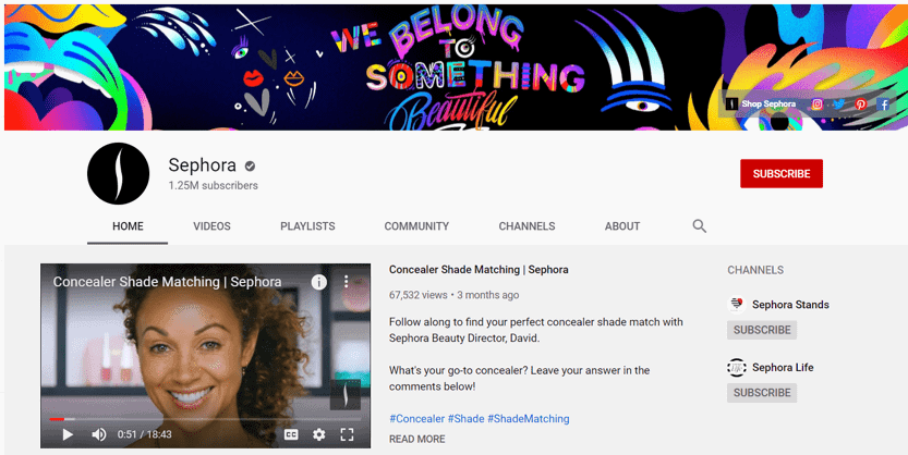 Now, take a look at Sephora’s YouTube channel. What do you notice?